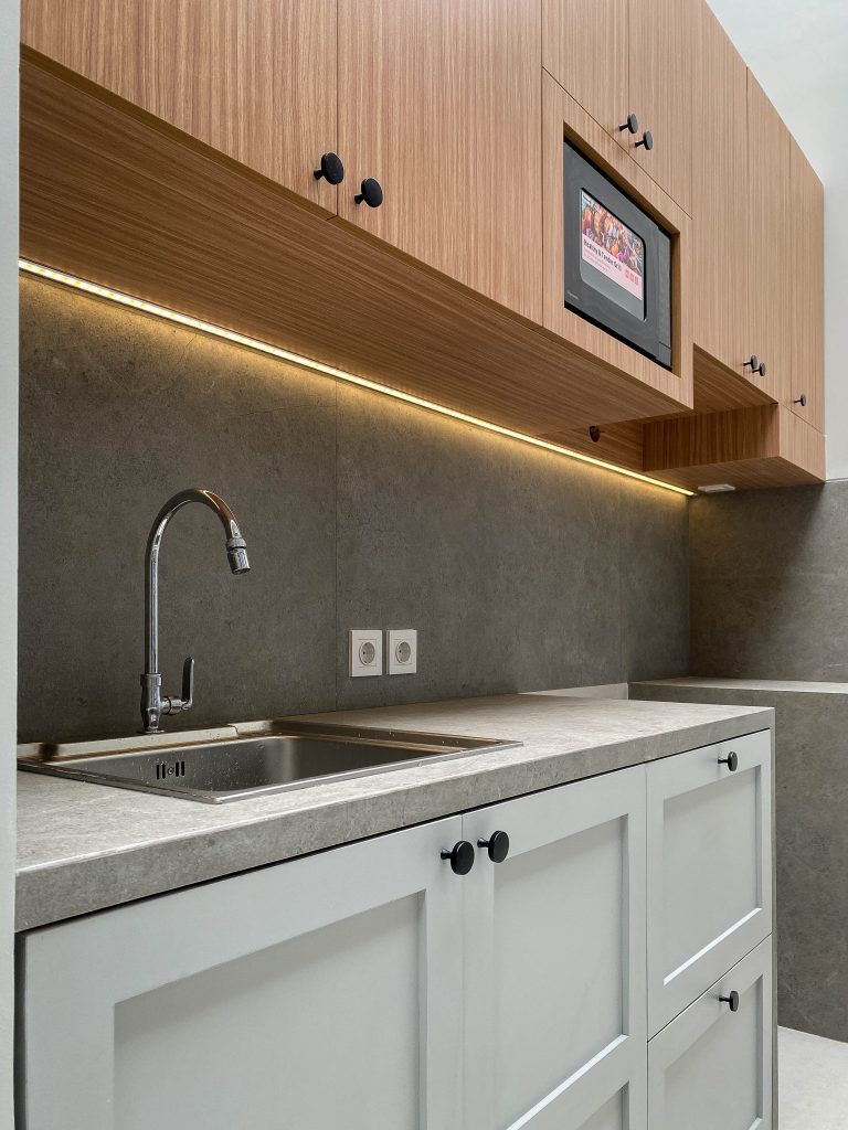 We agreed to extend the house and created a space for the kitchen and a laundry area