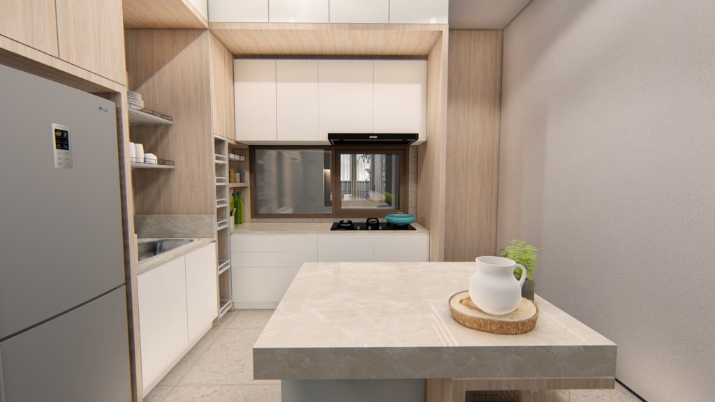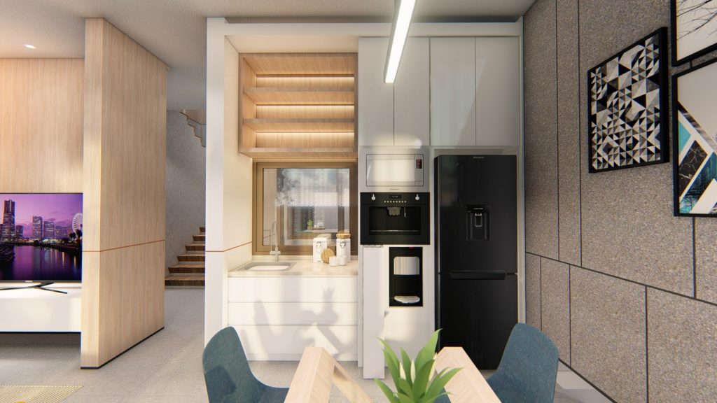 Combining the dining room and the pantry, it creates an open plan expression.