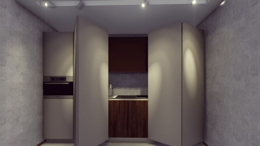 The hidden kitchen creates a clean illusion for the living room.