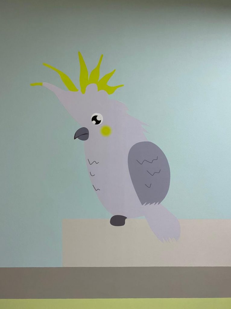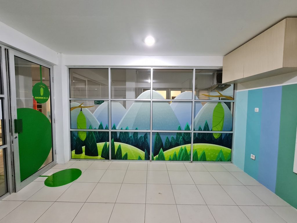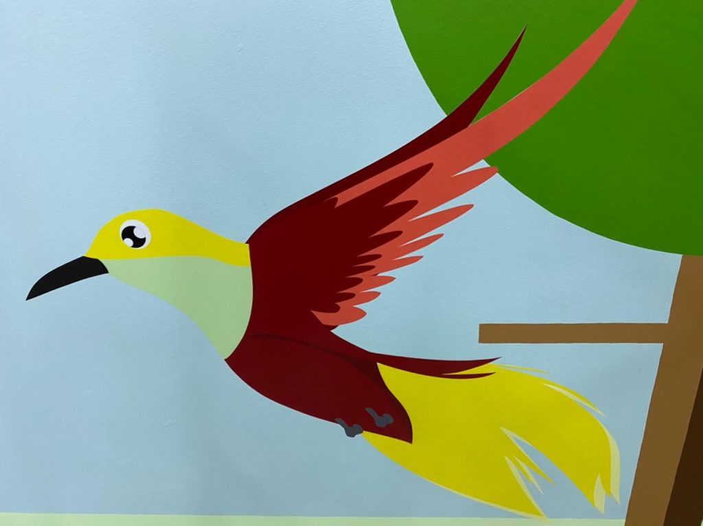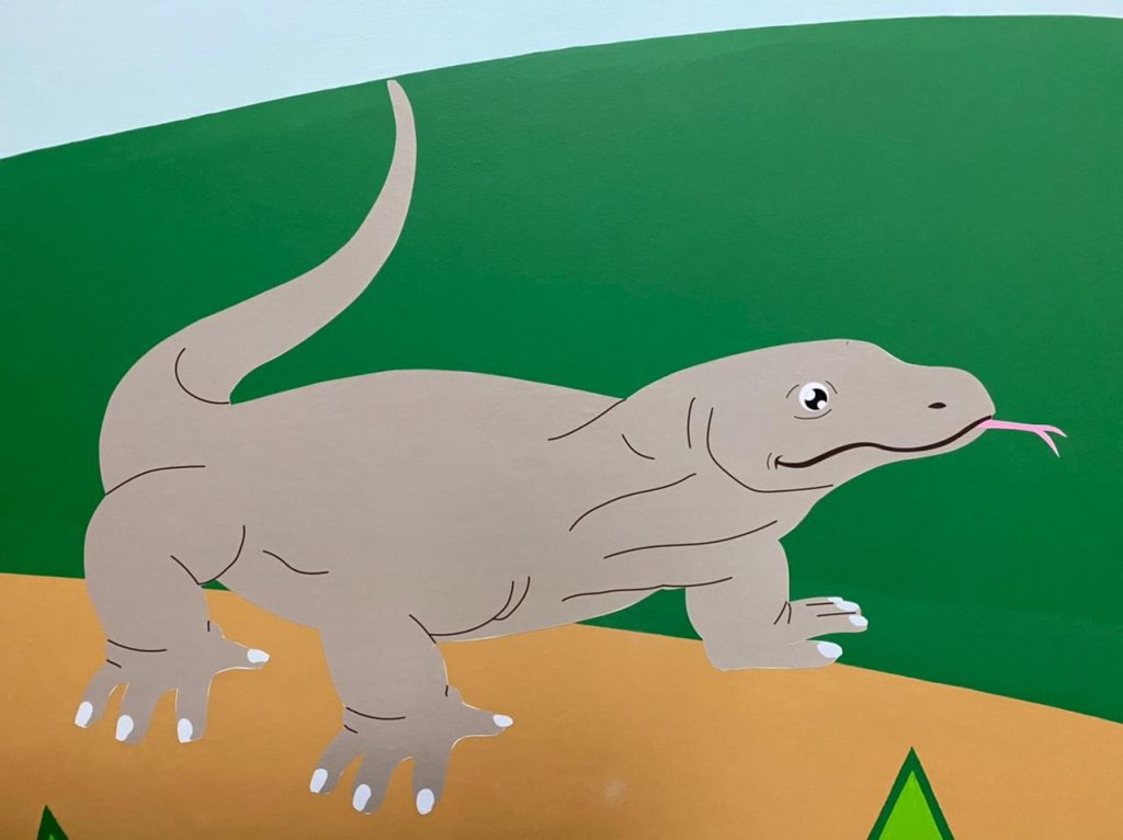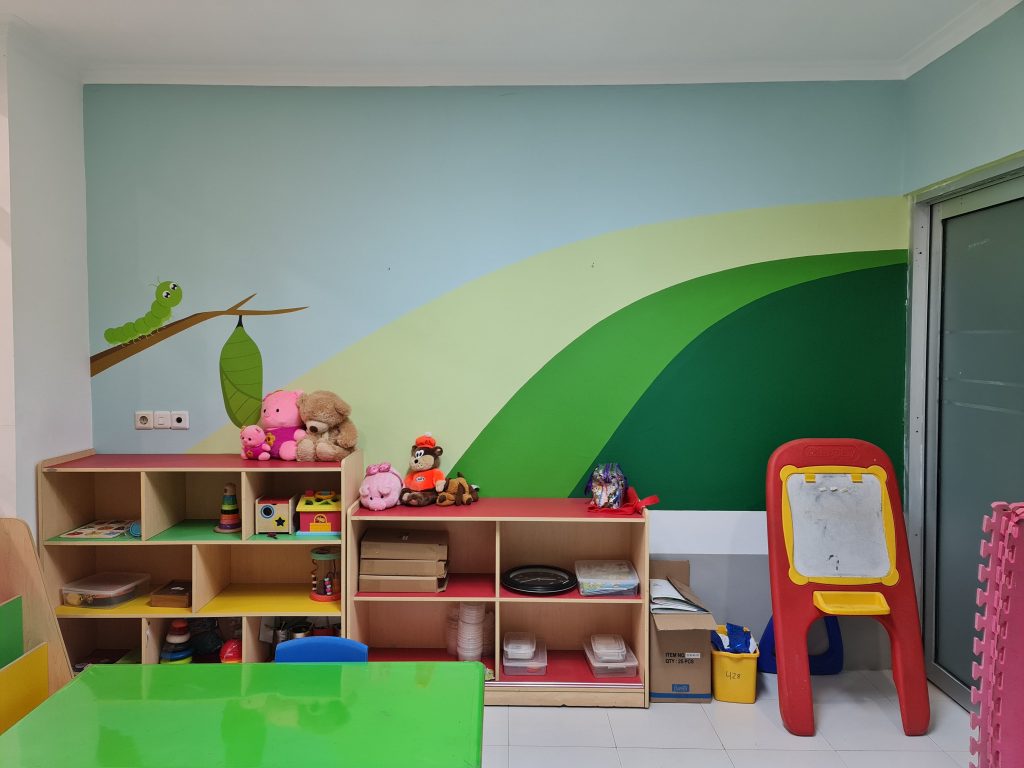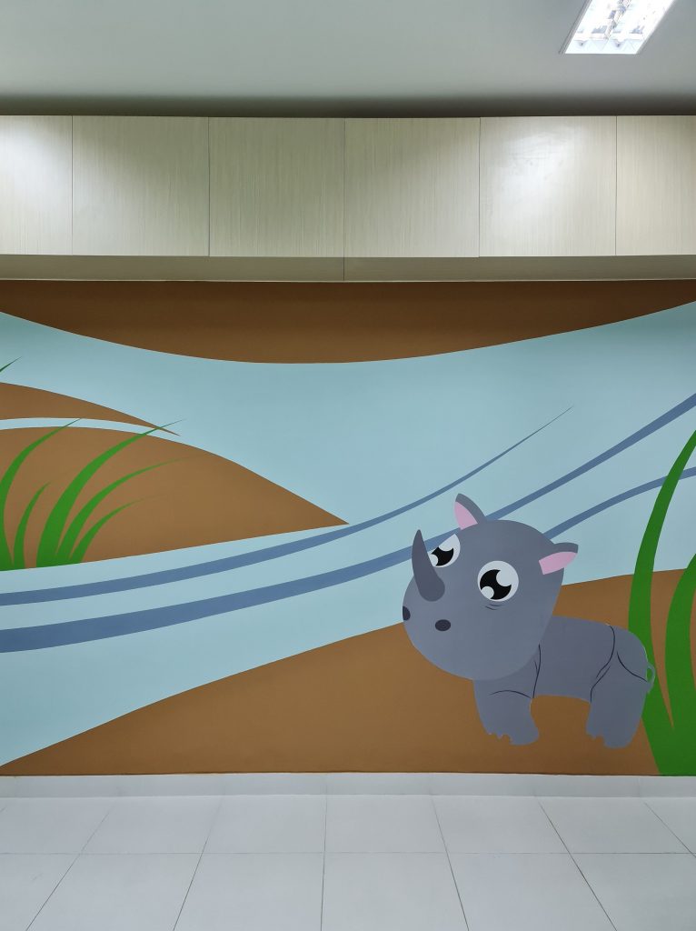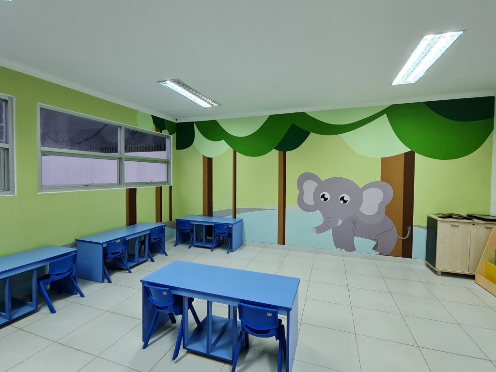 Creative cartoons illustrated on the walls to make the classrooms more interesting for the children