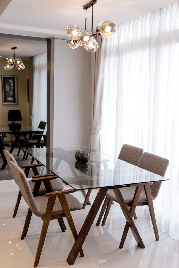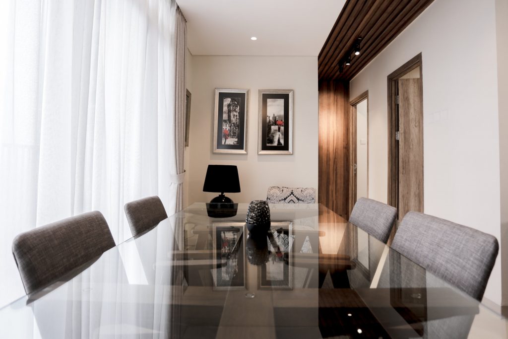 The decision to go with a slender dinner table was a good idea, preserving space in the apartment