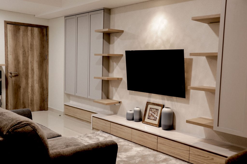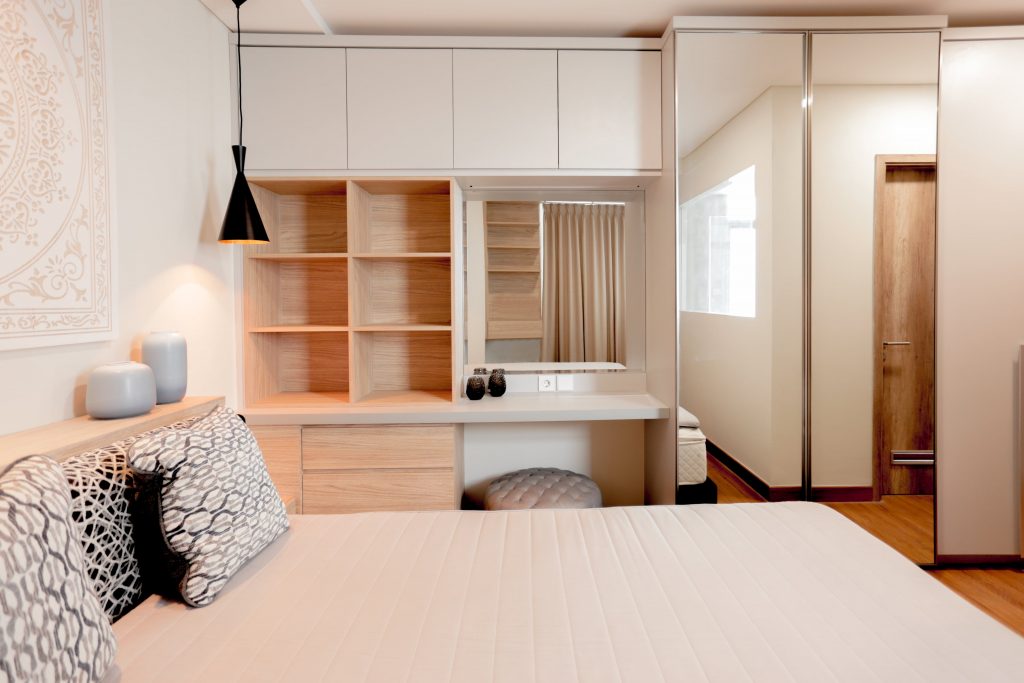 We provided the apartment with numerous storage space to create the illusion of a minimalist look.